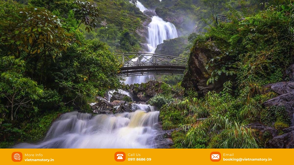- The Silver Waterfall (Thac Bac): This is an incredible, 200-meter-tall waterfall that descends down the mountainside like a ribbon of “white silk.” It is best viewed from the beautiful arched bridge at its base.