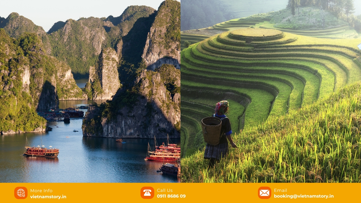 Moving from the emerald waters of Ha Long Bay to the misty peaks of Sapa is one of the most ambitious and rewarding routes in Northern Vietnam. Spanning approximately 435 – 500 km, this journey transitions you from a coastal UNESCO World Heritage site to the heart of the Hoang Lien Son mountains. At Vietnamstory, we specialize in making this long transit seamless for Indian travelers. Whether you are a family seeking door-to-door comfort or a couple looking for a cozy sleeper cabin, we ensure that the 6 – 10 hour journey is curated to your cultural preferences and dietary needs.