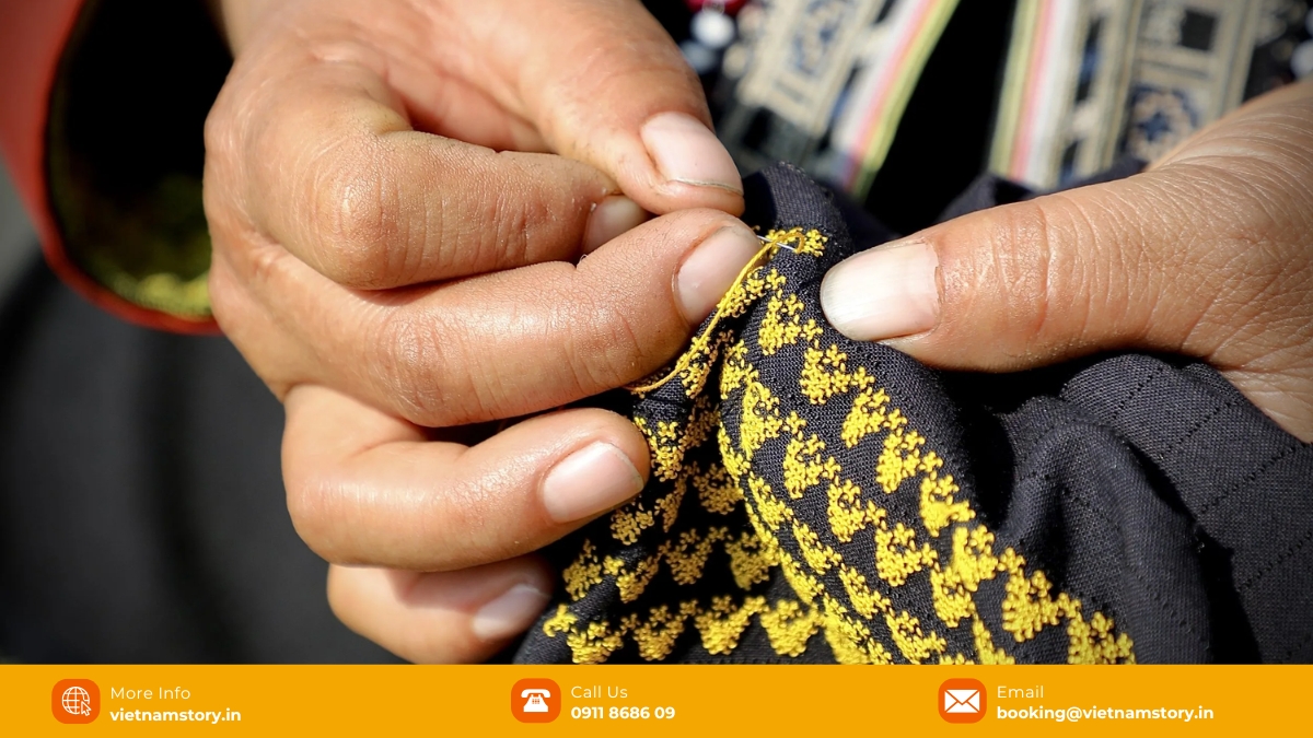 The Dao woman’s outfit is a masterpiece of hand-embroidery. Their jackets feature intricate panels representing flora and fauna. The symbolism of five colors – blue, white, yellow, black, and red – is central to their identity, with red being the most dominant to signify vitality.
