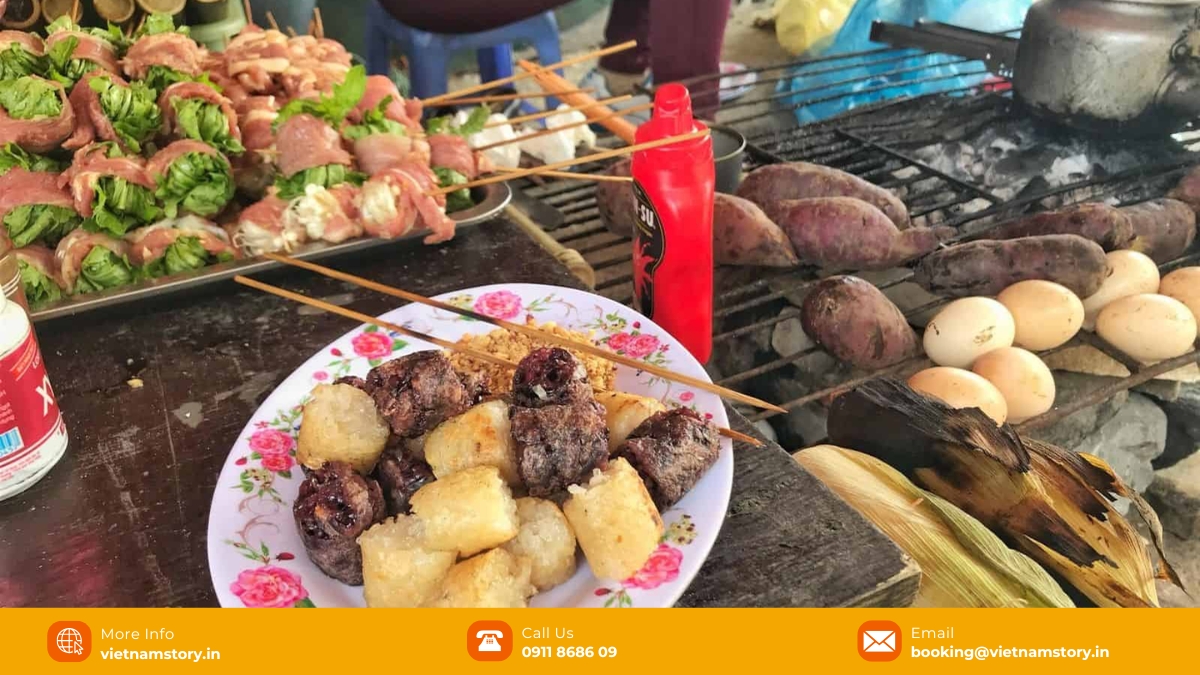 At the Heaven’s Gate O Quy Ho Pass scenic stop, you will find small roadside stalls with smoke rising from charcoal grills. We always encourage our guests to try Cơm Lam (bamboo-cooked sticky rice) and Grilled Pork Skewers seasoned with “Mắc Khén” (wild mountain pepper). The Mắc Khén has a numbing, citrusy spice profile similar to Szechuan pepper or certain Indian forest spices. It is hearty, warm, and usually very appealing to the Indian palate. It’s the perfect “mountain soul food.”
