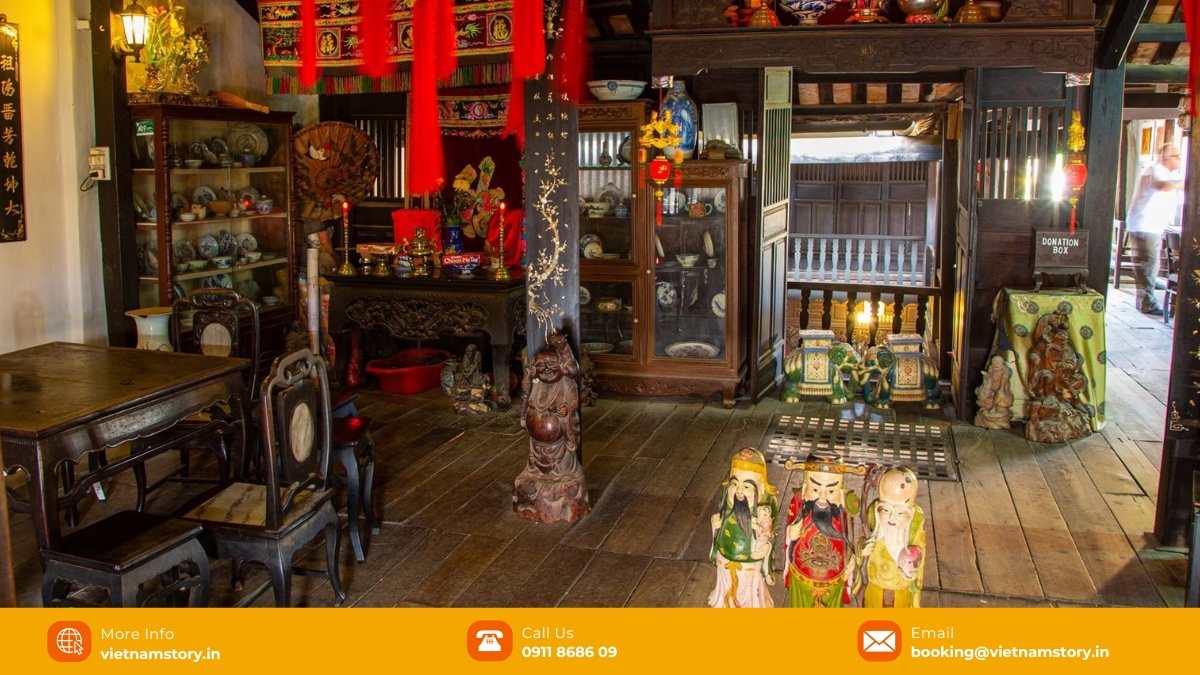 The house masterfully combines elements from three distinct cultures, creating a style that is uniquely Hoi An.