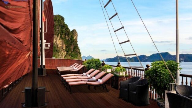 • 11:00: Return to the ship to have lunch buffet on board with dishes prepared very delicately from the products of Ha Long…