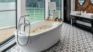 • Wake up early to enjoy the sunrise and join the Tai Chi session to refresh your body and mind. Light breakfast with nutritious options is waiting for you in the dining area before you are picked up for the day boat at around 8:15. Visit Viet Hai Village on a bicycle or electric car. You have a chance to mingle with locals, watch a beautiful cave and lagoon before enjoying lunch at a local restaurant.