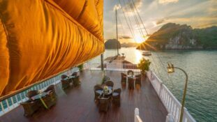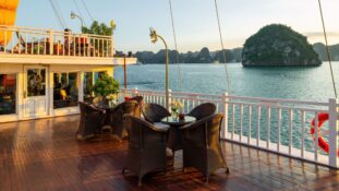 Indochina Sails, with its 23 elegantly appointed cabins, captures the essence of traditional Vietnamese design, offering a cozy and welcoming atmosphere. The interiors feature the warm scent of fragrant wood, enhancing the charm of each space, while the granite-finished bathrooms ensure comfort, keeping you cool in the summer and warm in the winter. All cabins are fully air-conditioned and come with private bathrooms, featuring spacious double beds in both Superior and Deluxe rooms. We’ve crafted and equipped the cruise to meet international standards, seamlessly blending modern comforts with the timeless beauty of Vietnam’s heritage.