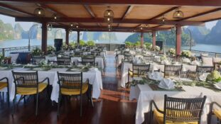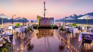 Indochine Cruise, certain to be the most luxurious cruiser on Lan Ha bay, this new member of the Indochina Sails family will comprise of forty-three and light luxury cabins in across four categories: Junior Suite, Suite, Executive Suite and President Suite. Each cabin is constructed out of rich oak, with high windows and private balconies so that guests can make the most of the incredible views. Designed by passengers, one that encapsulates the artistic period of Vietnamese history throughout its evocative colonial era.