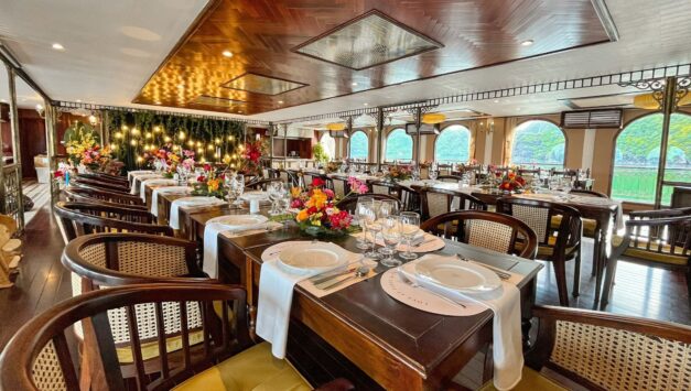 Launched in 2019, the Indochine Cruise quickly became one of the top choices for travelers looking to explore the pristine beauty of Lan Ha Bay. With a capacity of up to 110 guests, the Indochine Cruise offers spacious and comfortable accommodations, along with unforgettable experiences as you glide through emerald waters and past majestic limestone formations. You’ll also have the chance to explore hidden caves beneath the mountains and enjoy breathtaking views from the deck. This journey promises to be the perfect blend of adventure and relaxation, leaving you with unforgettable memories.